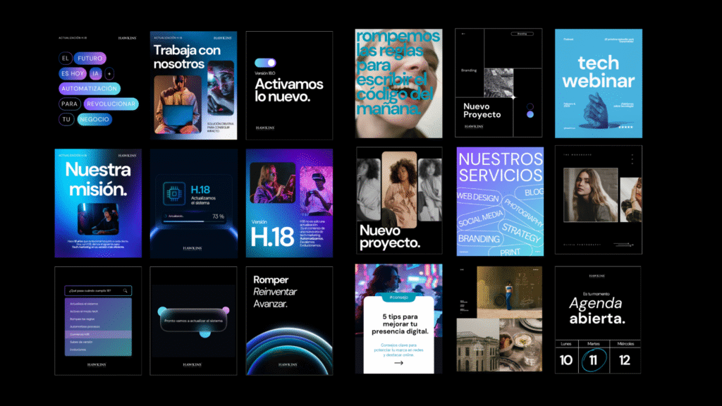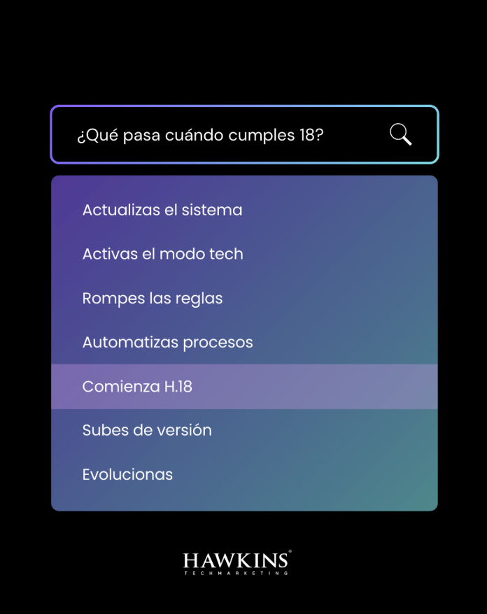 Celebrar los 18 años de Hawkins con un rebranding que refleje su madurez, evolución y enfoque actual en tecnología, automatización y marketing digital. La nueva identidad debe posicionar a la empresa como un referente en tech marketing, combinando experiencia con innovación.